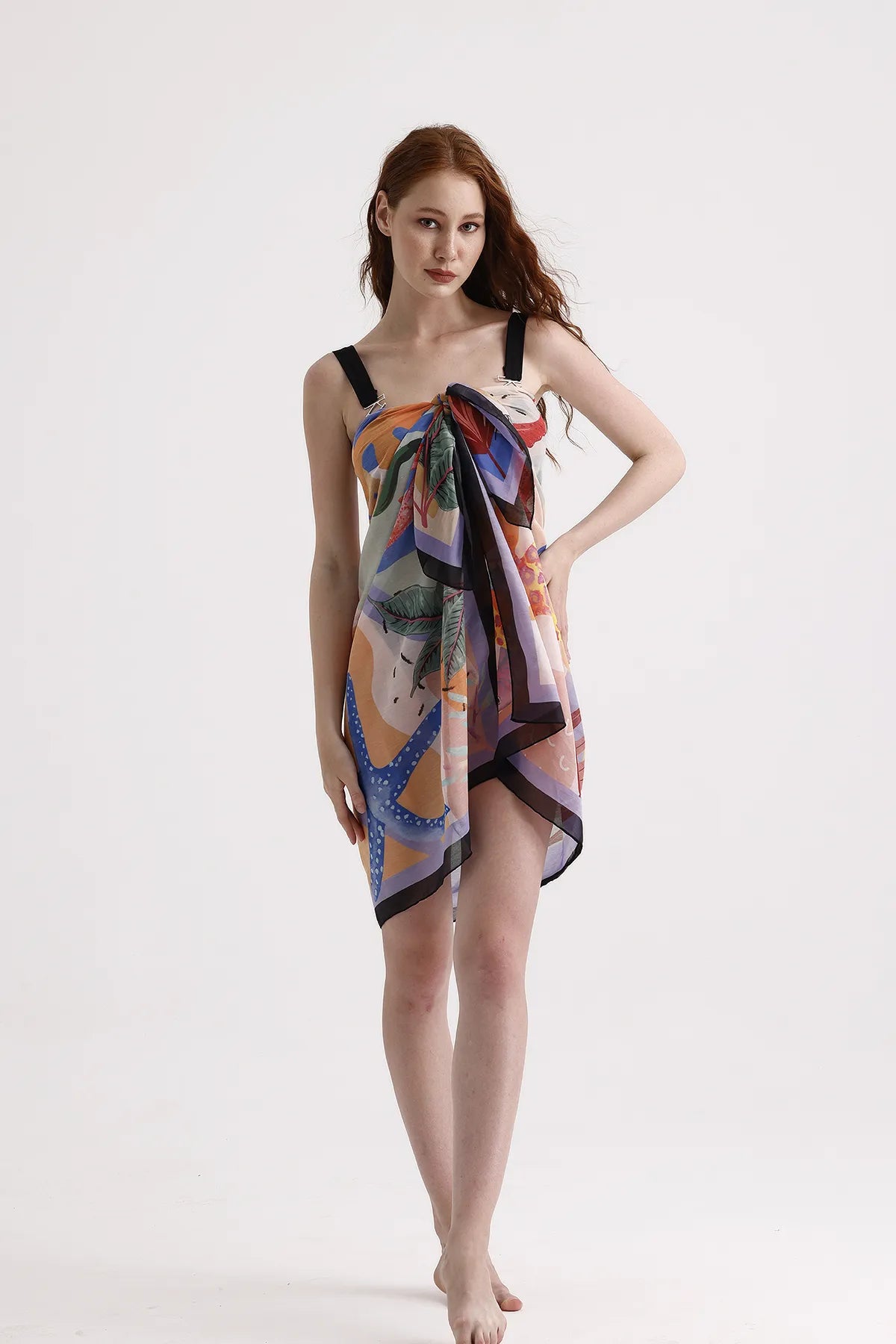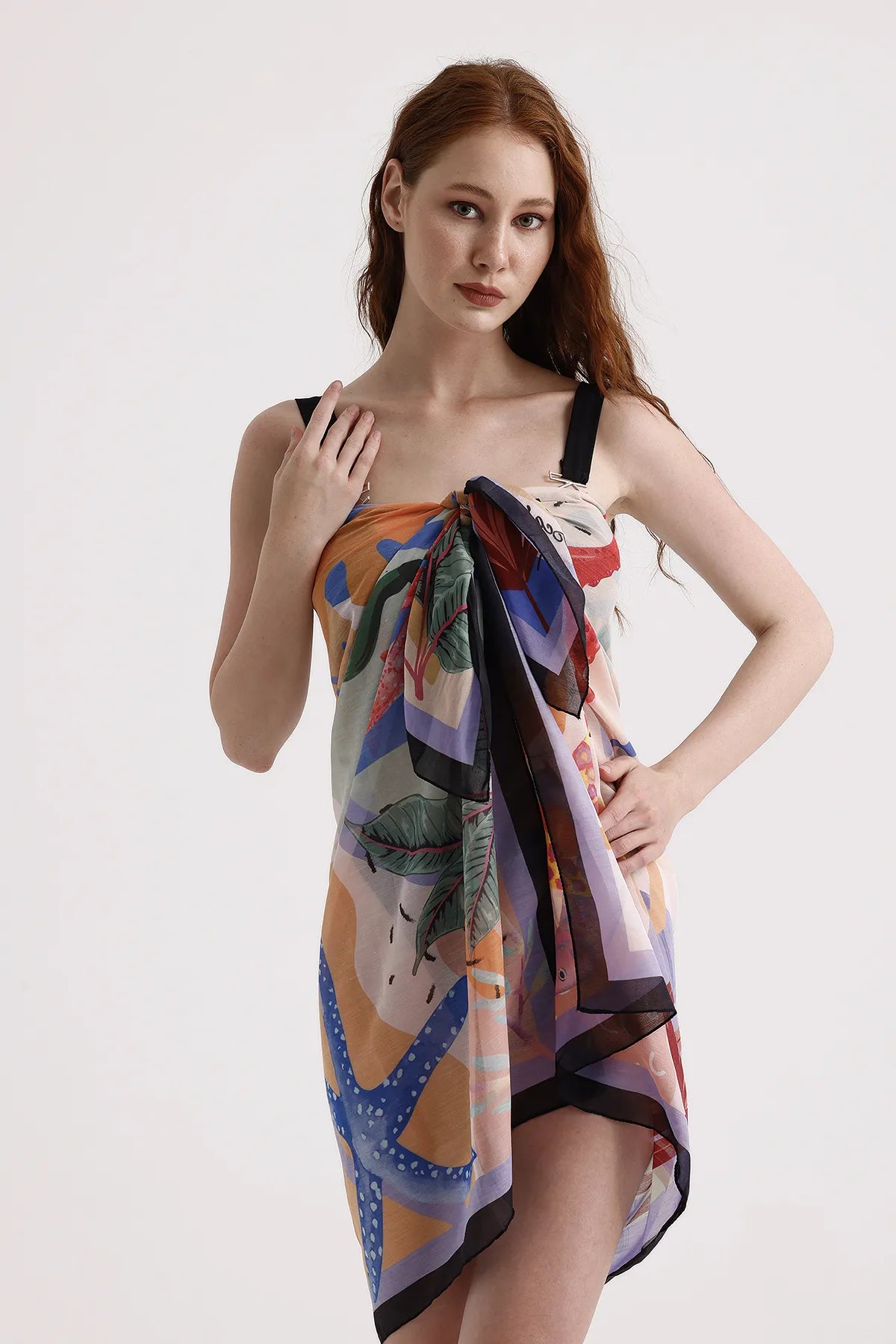 Plaj tekstil koleksiyonunun şık bir parçası olan deniz yıldızlı pareo, tüm yaş gruplarına hitap eden tasarımıyla plaj modasının vazgeçilmez bir parçası; Dokuma kumaş yapısı sayesinde dayanıklılığı ve konforu bir arada sunar, uzun süreli kullanım için idealdir; Polyester materyali ile hızlı kuruyan ve kolayca şekil alan bir yapıya sahiptir, böylece plajda rahatça hareket edebilirsiniz; Düz kesimiyle sade ve şık bir görünüm sağlar, farklı aksesuarlarla kolayca kombinlenebilir; Beachwear olarak tasarlanmış olup, plajda şıklığınızı tamamlamak için mükemmel bir seçimdir;